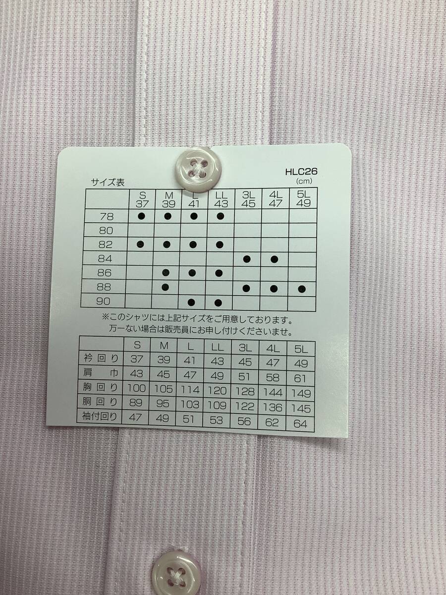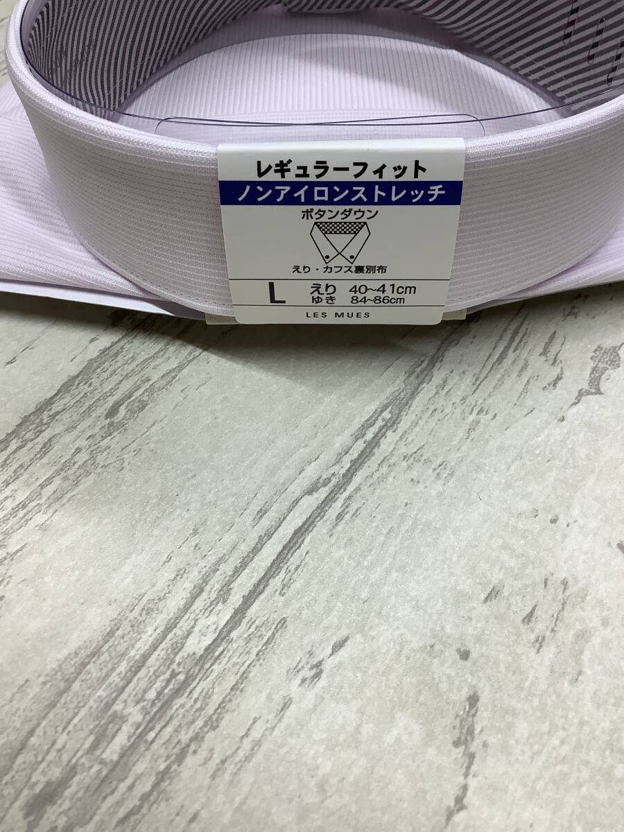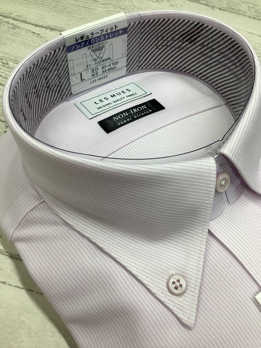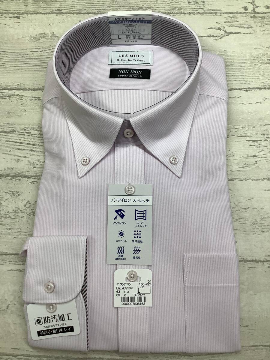 新品未使用 ★カッターシャツ★41-86長袖Lサイズ  ノンアイロンコットン ポリエステル100% ボタンダウン ピンクストライプ