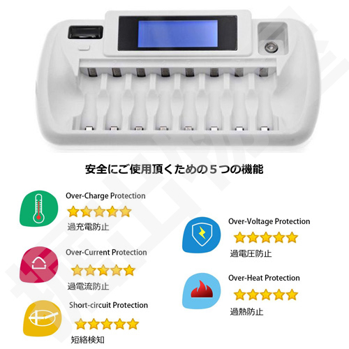 加熱防止/ショート防止/過充電防止機能が搭載で、安全に充電できます。