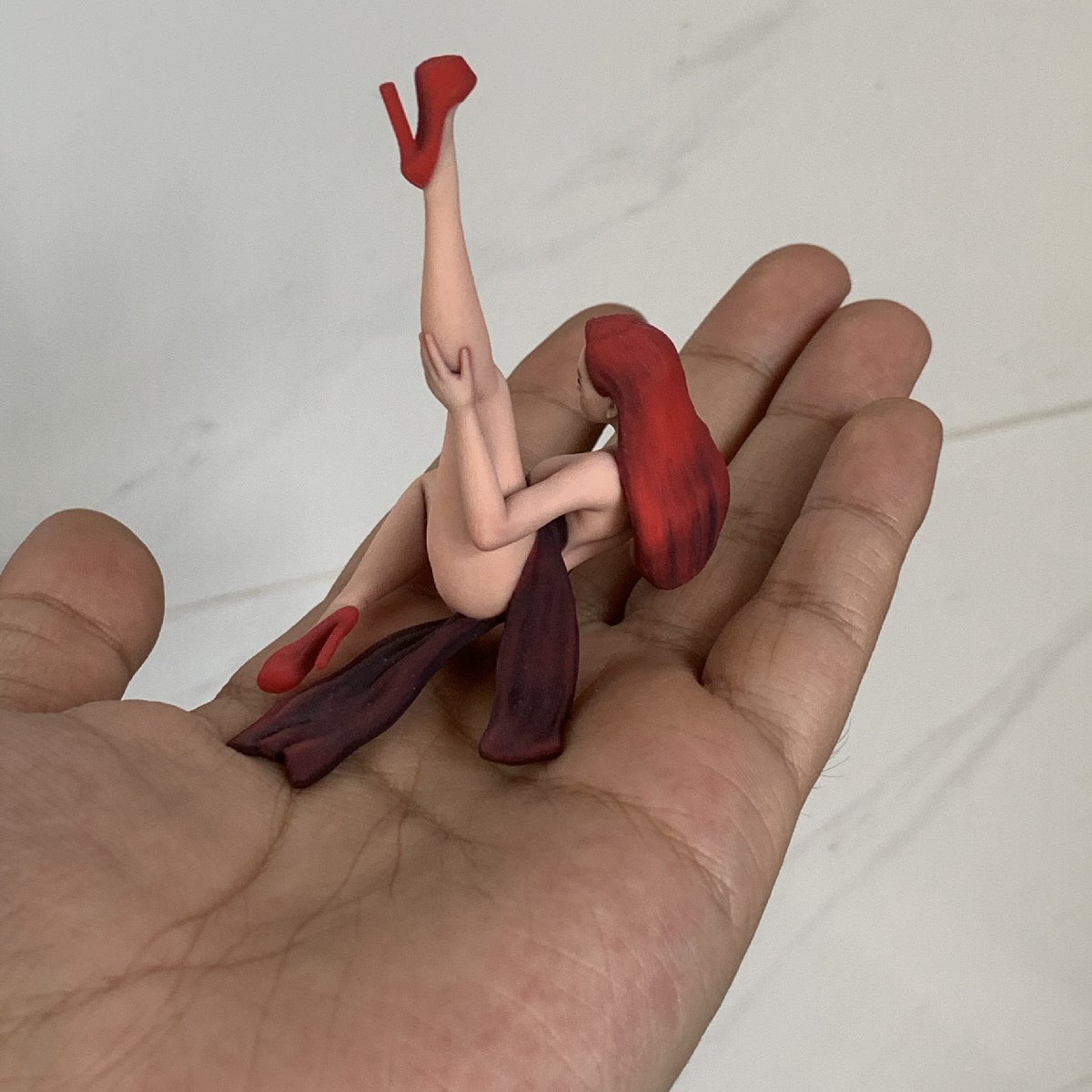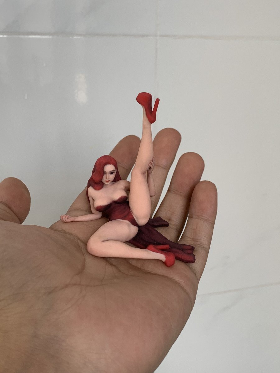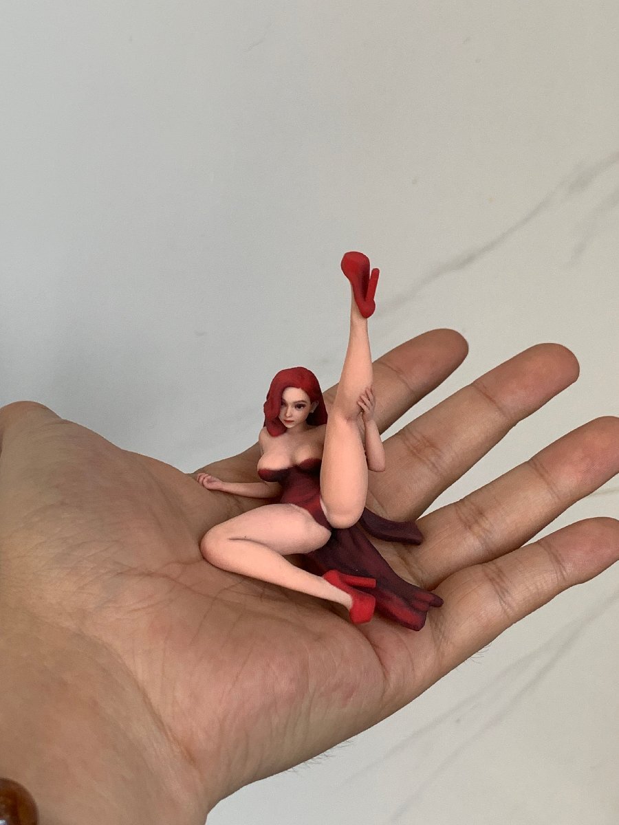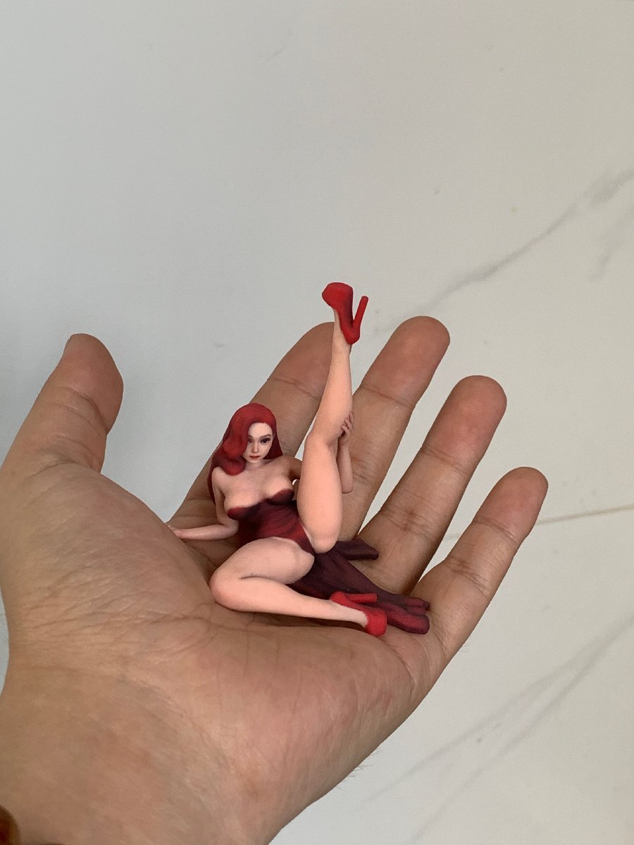 1/18スケールの赤髪美女のスタチュー人形モデル、シーン付きの車載・ケース用の車モデルフィギュア