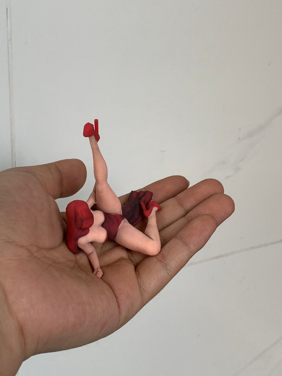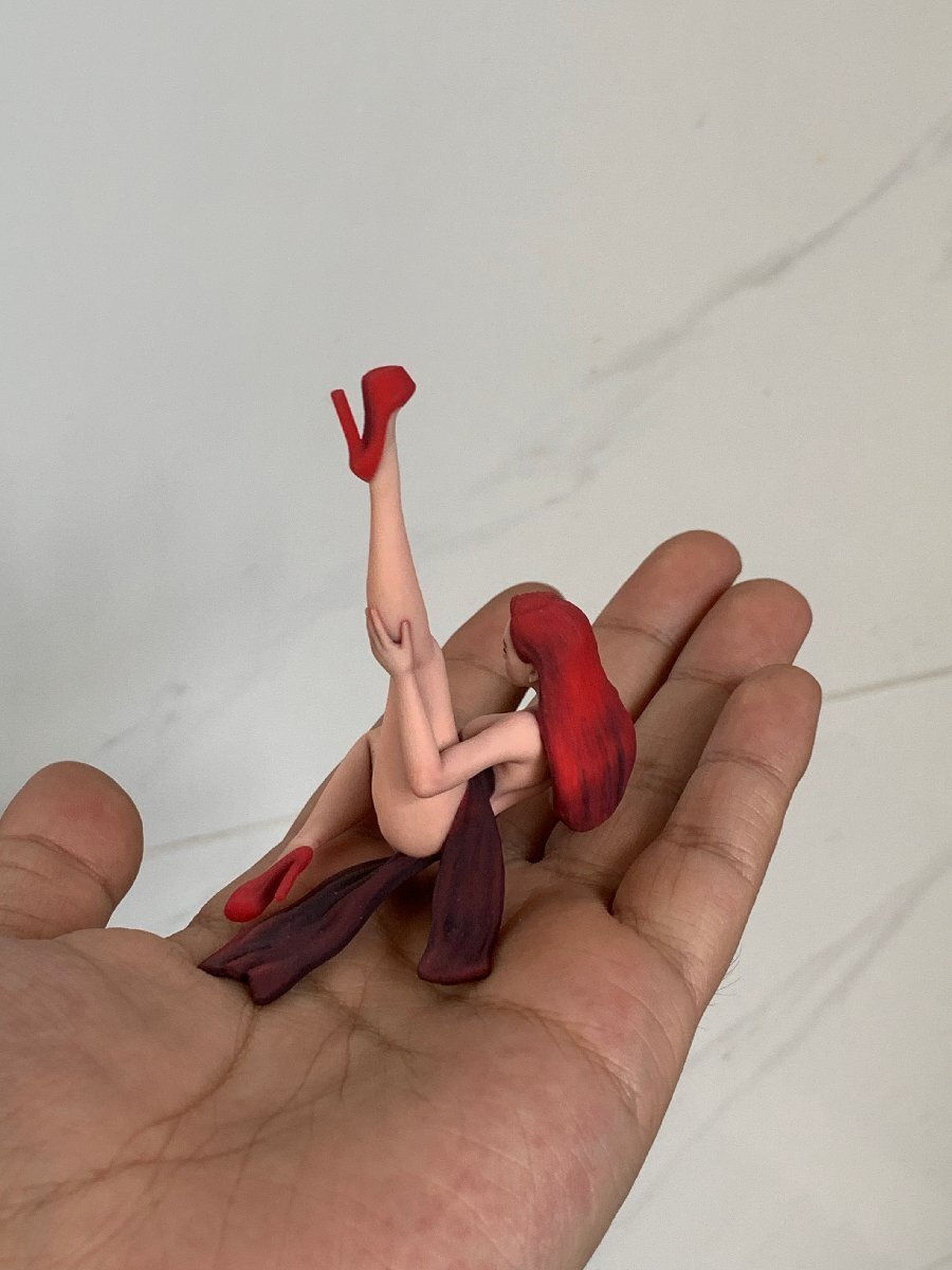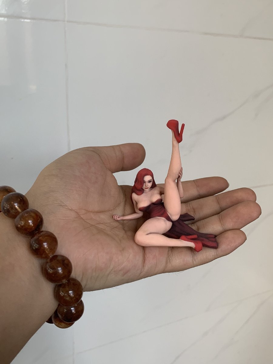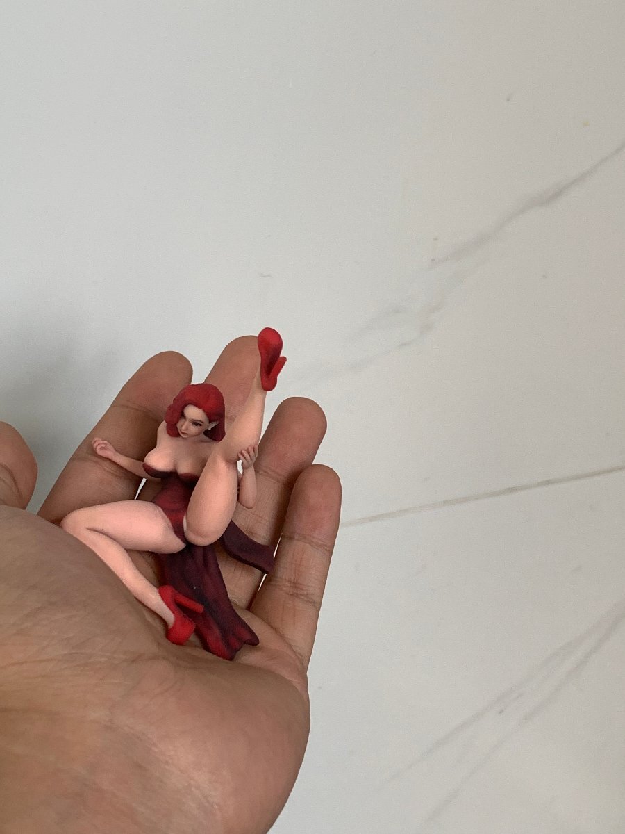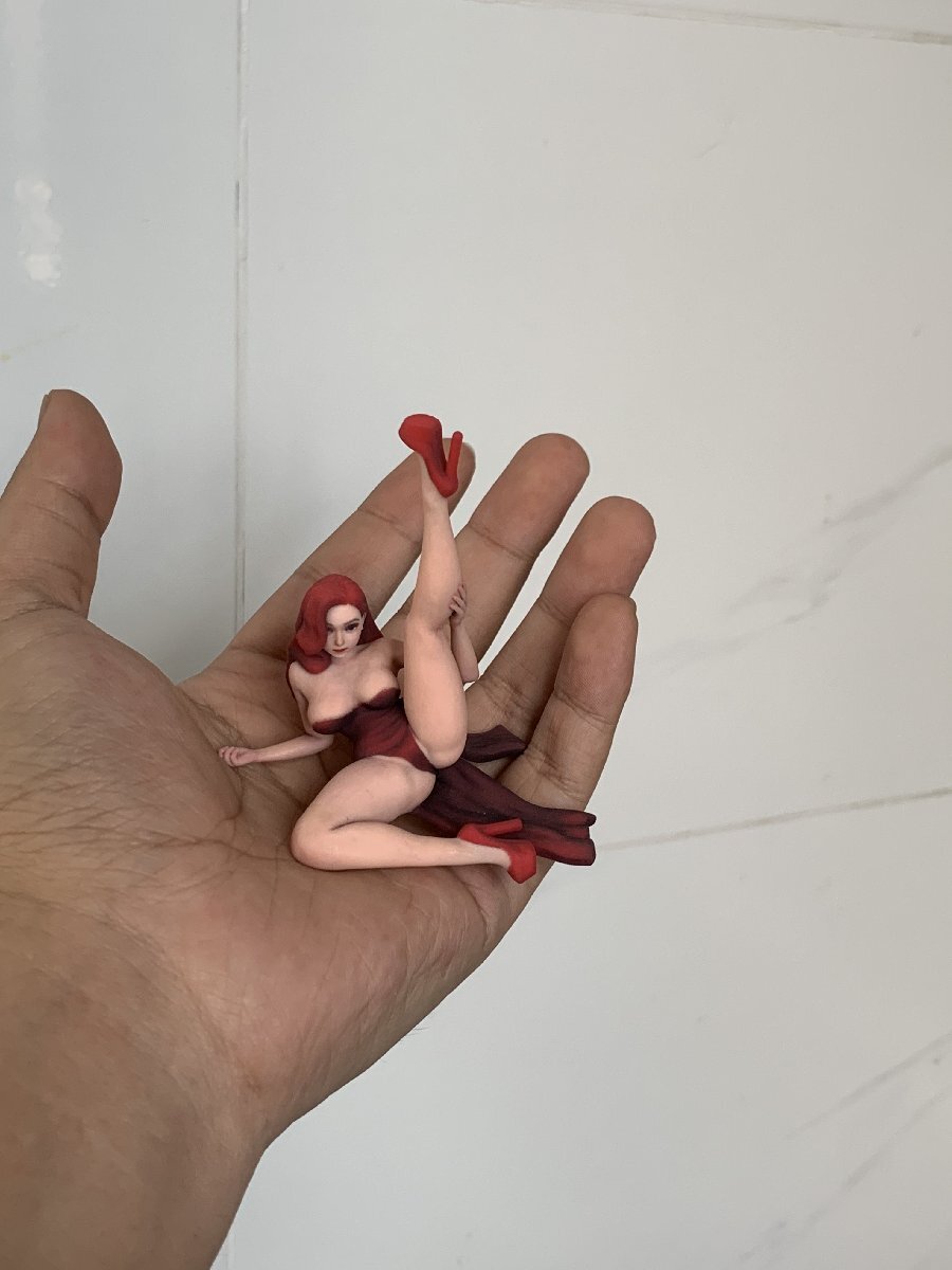 1/18スケールの赤髪美女のスタチュー人形モデル、シーン付きの車載・ケース用の車モデルフィギュア