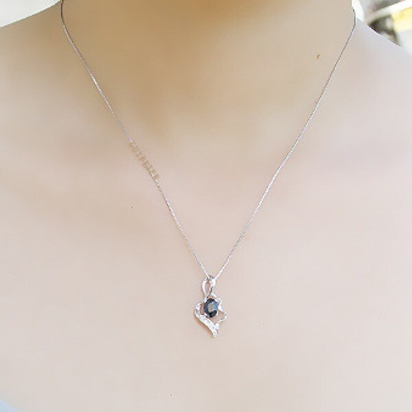 サファイア100% のブラックペンダントネックレス 6mm 天然サファイアの宝石 日常使用