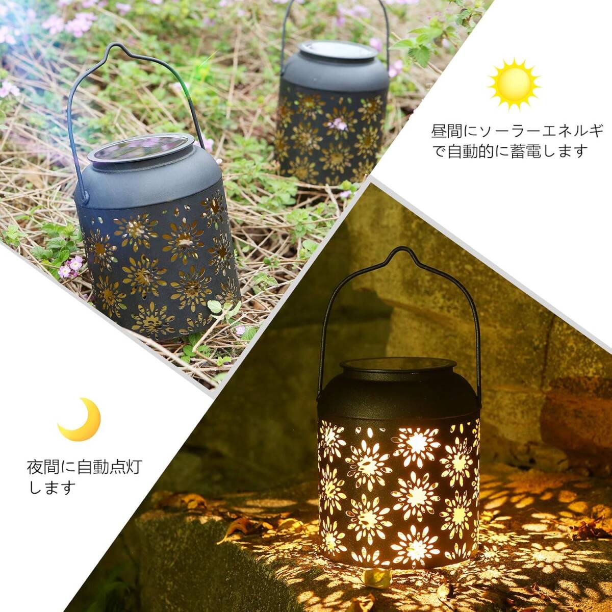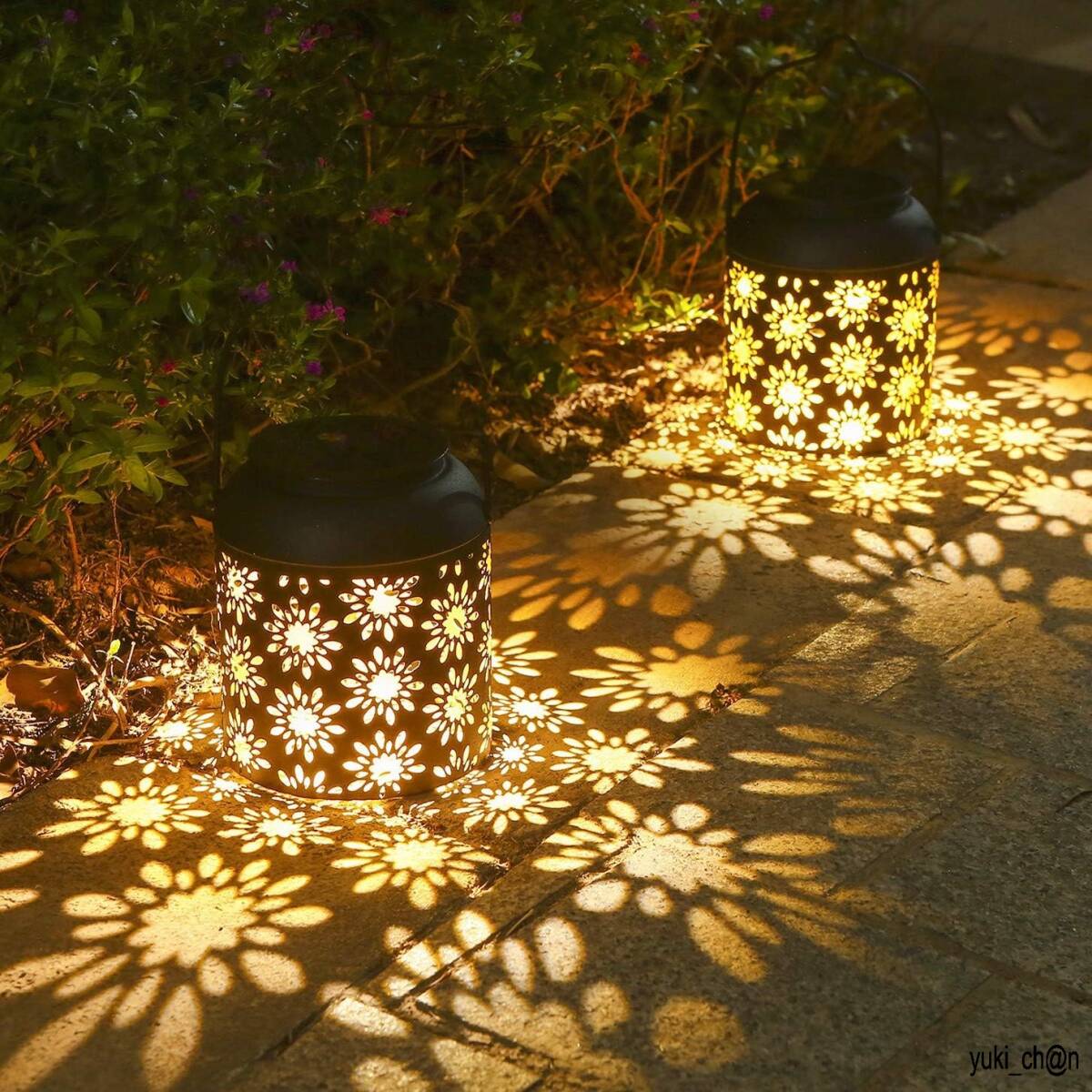 ソーラーランタン ソーラーライト 2個セット 花柄 屋外 ガーデンライト LEDランタン ガーデンライト ソーラー 夜間自動点灯 防水 暖色 無線
