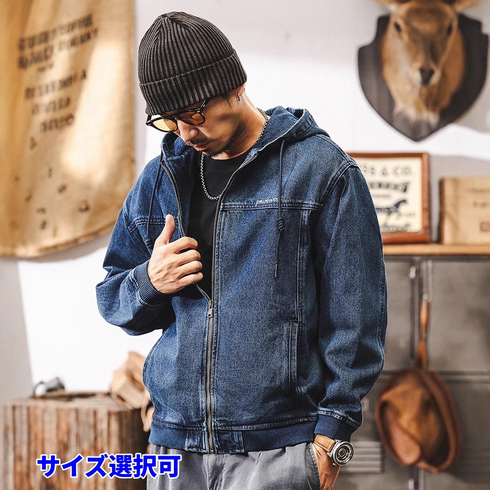 デニムジャケット パーカー 新品★メンズファッション フード付き ジージャン ジャンパー gジャン バイクジャケット 作業服 アメカジ 春秋用【DR001】ブルー M