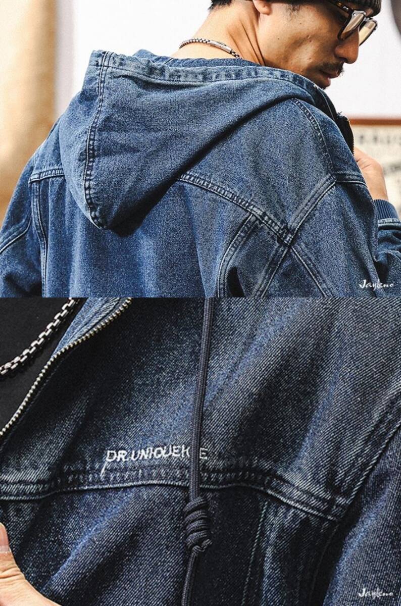 デニムジャケット パーカー 新品★メンズ フード付き ジージャン ジャンパー バイクジャケット 作業服 アメカジ【DR001】ブルー M