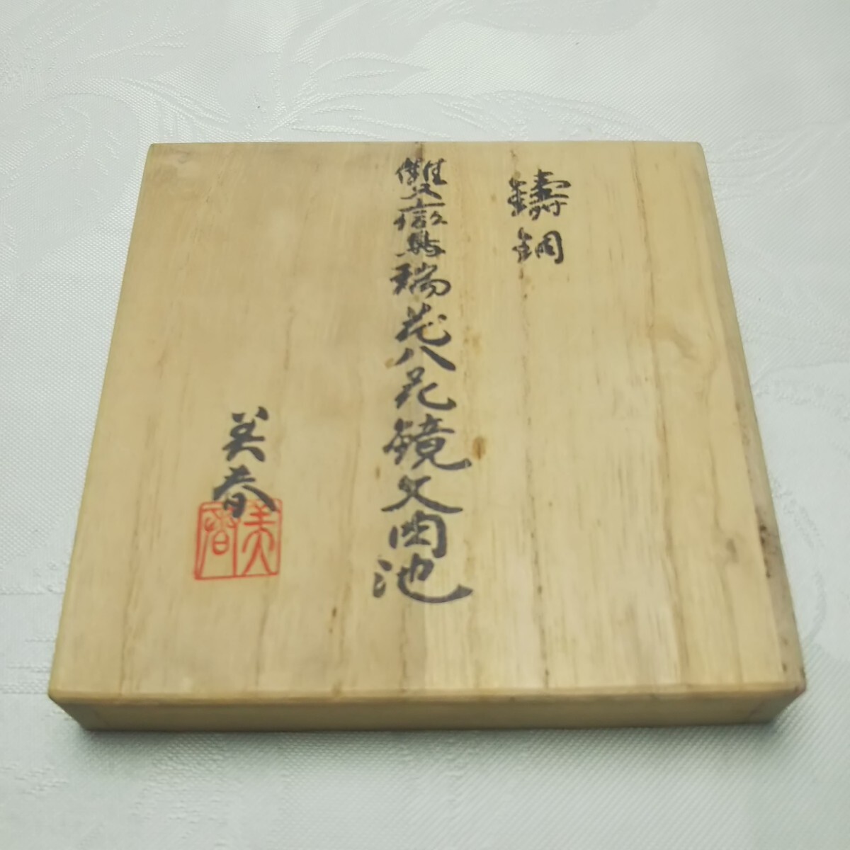 【尚工舎 笑春作 銅製 雙鸞瑞花八花鏡文肉池 共箱 朱肉入り 鋳銅製 芸術 名品 伝統工芸 小林美春彫塑 】