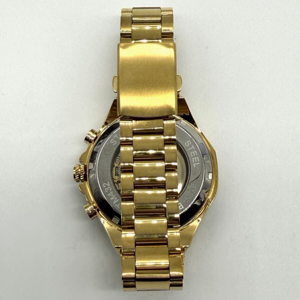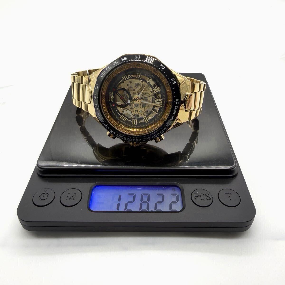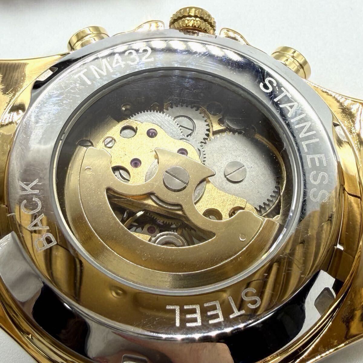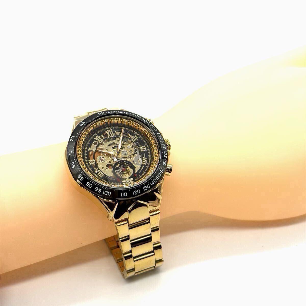 ◆稼働品◆WINNER メンズ腕時計 スケルトンウォッチ 自動巻き クロノグラフ ゴールドx黒 時計 コンビ