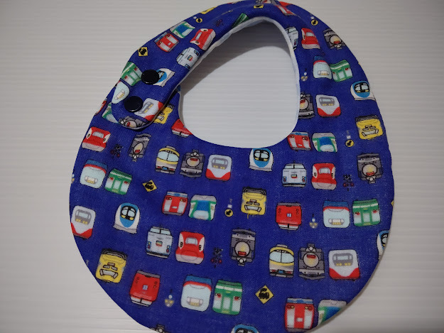 ☆電車 新幹線 青 ふんわり10重ガーゼ前ボタンスタイ ハンドメイド
