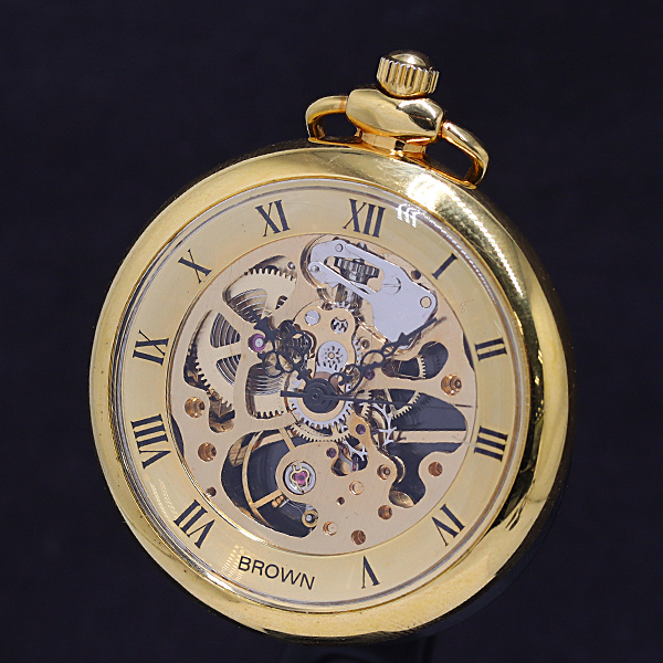 1円 ブロウン BROWN 手巻き スケルトン/ゴールド文字盤 懐中時計 腕時計 3456000 10BJY MST