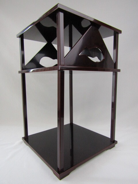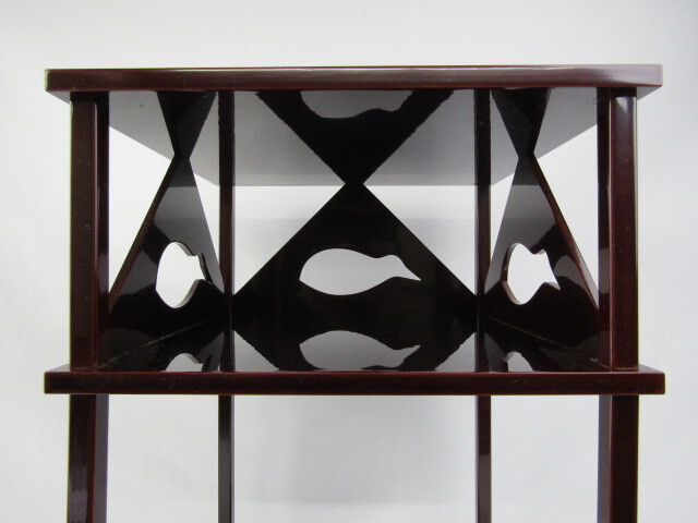 【Y】◇茶道具 表千家 溜塗 鱗透かし 二重棚 即中斎好 組立式 Y5-1011◇