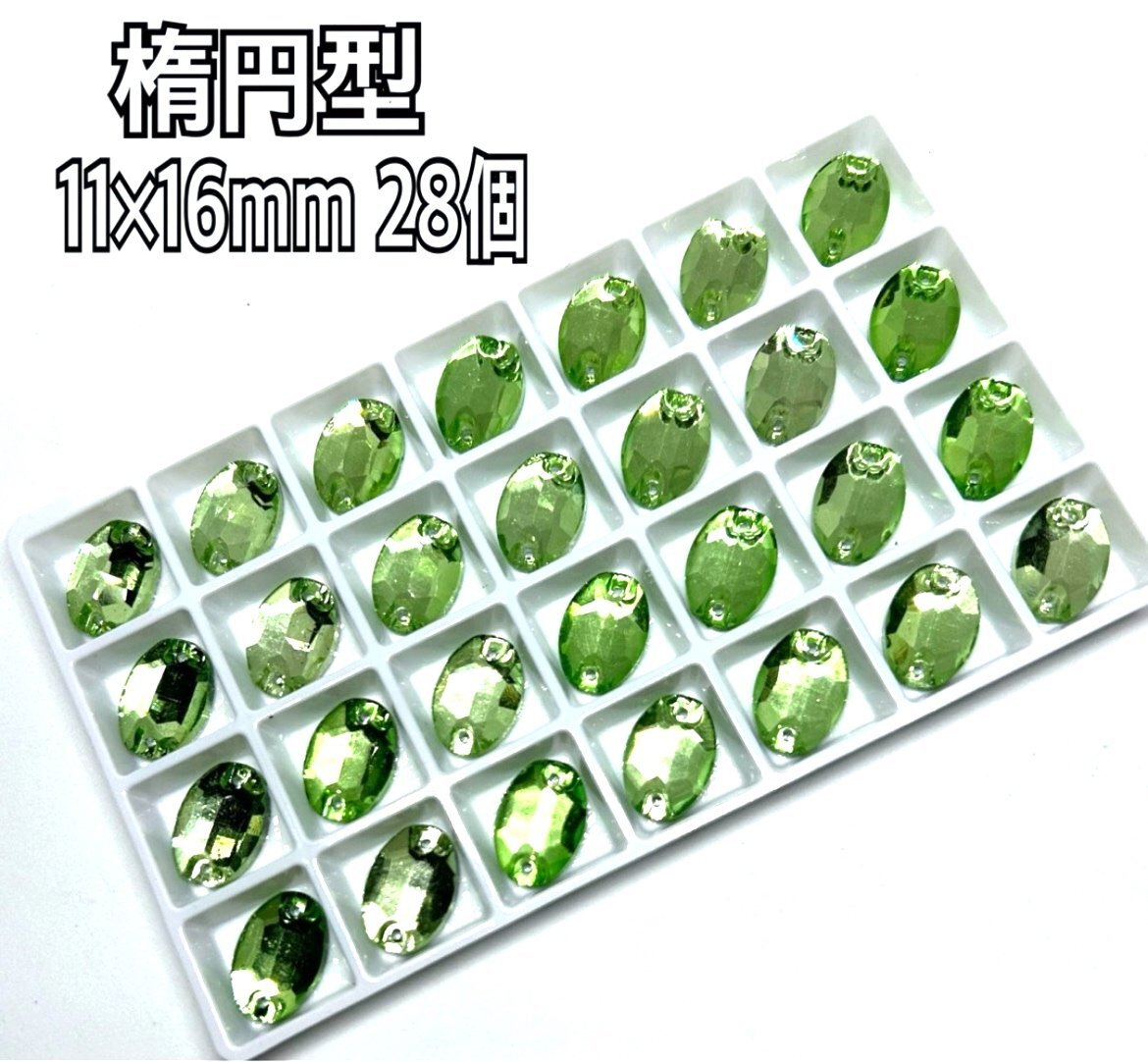11×16mm 28個 楕円型 ガラスビジュー 衣装装飾用 高輝度 レオタード 新体操 グリーン