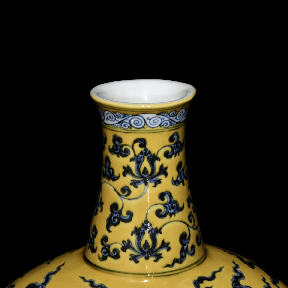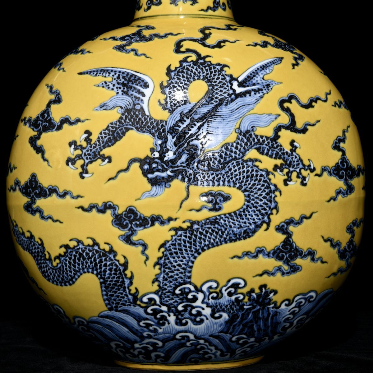 【永】明時代 宣德年製 黄釉 青花 龍紋扁瓶 古陶磁器 陶芸 皿 中国陶瓷器 唐瓷 置物擺件 古美術品 古賞物 旧家蔵出 中国唐物 A26