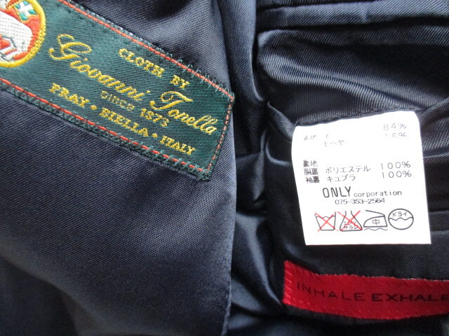 INHALE EXHALE インヘイル エクスヘイル Giovanni Tonella 段返り3つボタン セットアップ スーツ 表記サイズ170A ダークブルー