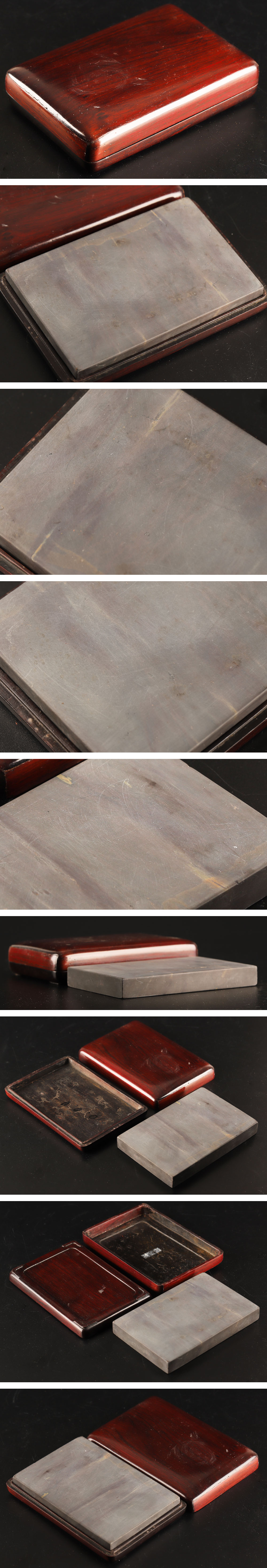 硯 幅 約11.8×17.5cm 高 約2.2cm 箱 幅 約13.3×19cm 高 約4.2cm |
