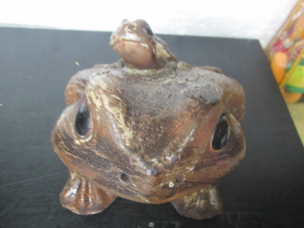 昭和レトロ カエルの置物 親子蛙 焼き物 陶器