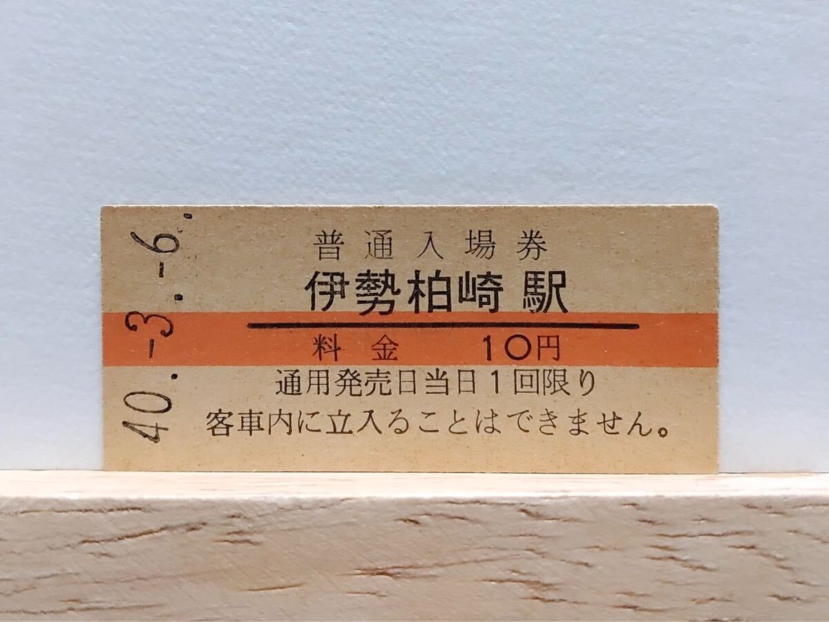 【切符/硬券】紀勢本線 普通入場券 伊勢柏崎駅 赤線 10円 S40 @ h