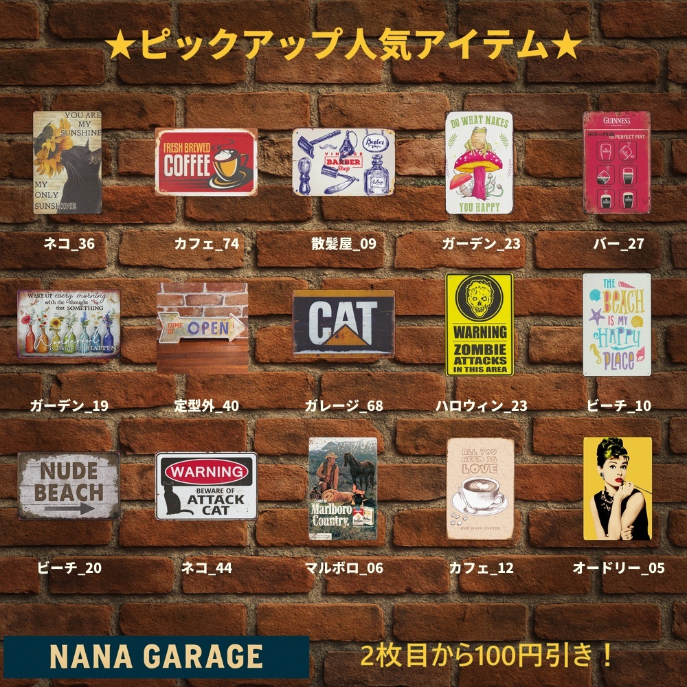 海外直輸入のヴィンテージ風ブリキ看板を中心に、