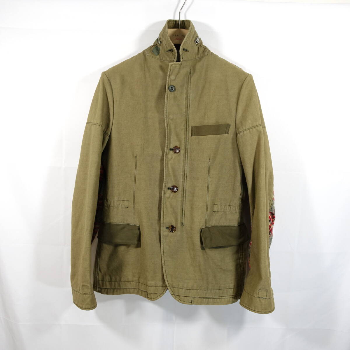 洗い込んだあたりの入ったミリタリーと、ホームスパンの風合い感の強いツイードの切り替えが絶妙です。