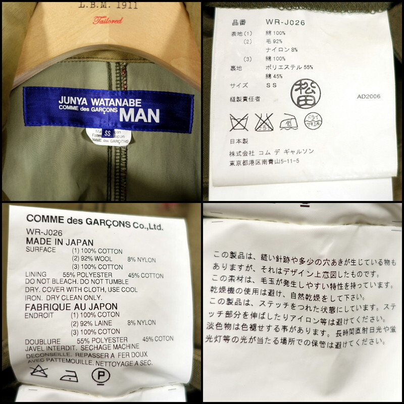 【名作】ジュンヤワタナベマン 切替ミリタリージャケット AD2006 JUNYA WATANABE COMME des GARCONS MAN サイズSS オリーブ