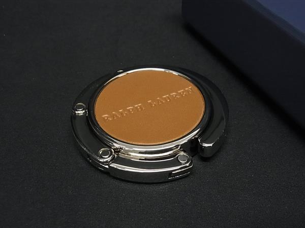 ■極美品■ RALPH LAUREN ラルフローレン レザー バッグハンガー バッグフック バッグかけ ブラウン系×シルバー系 DI4392
