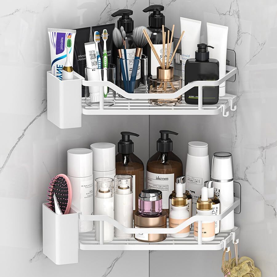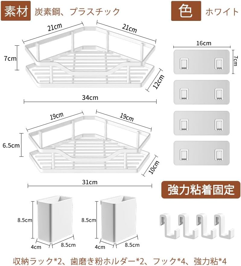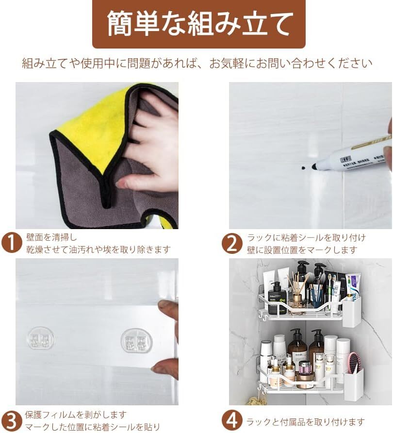 スタイリッシュデザイン ホワイト色 Zilnox 浴室用ラック ステンレス シャワーラック 強力粘着固定 大容量 お風呂 収納 浴室