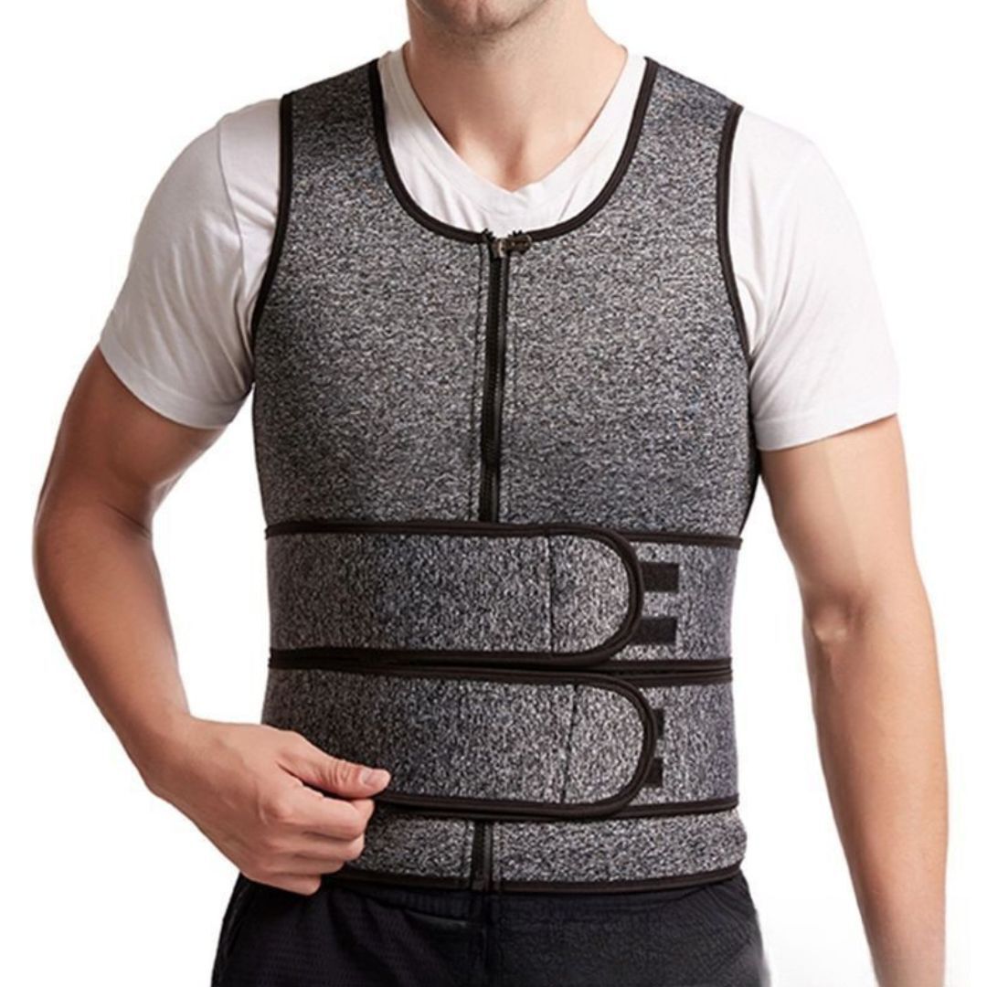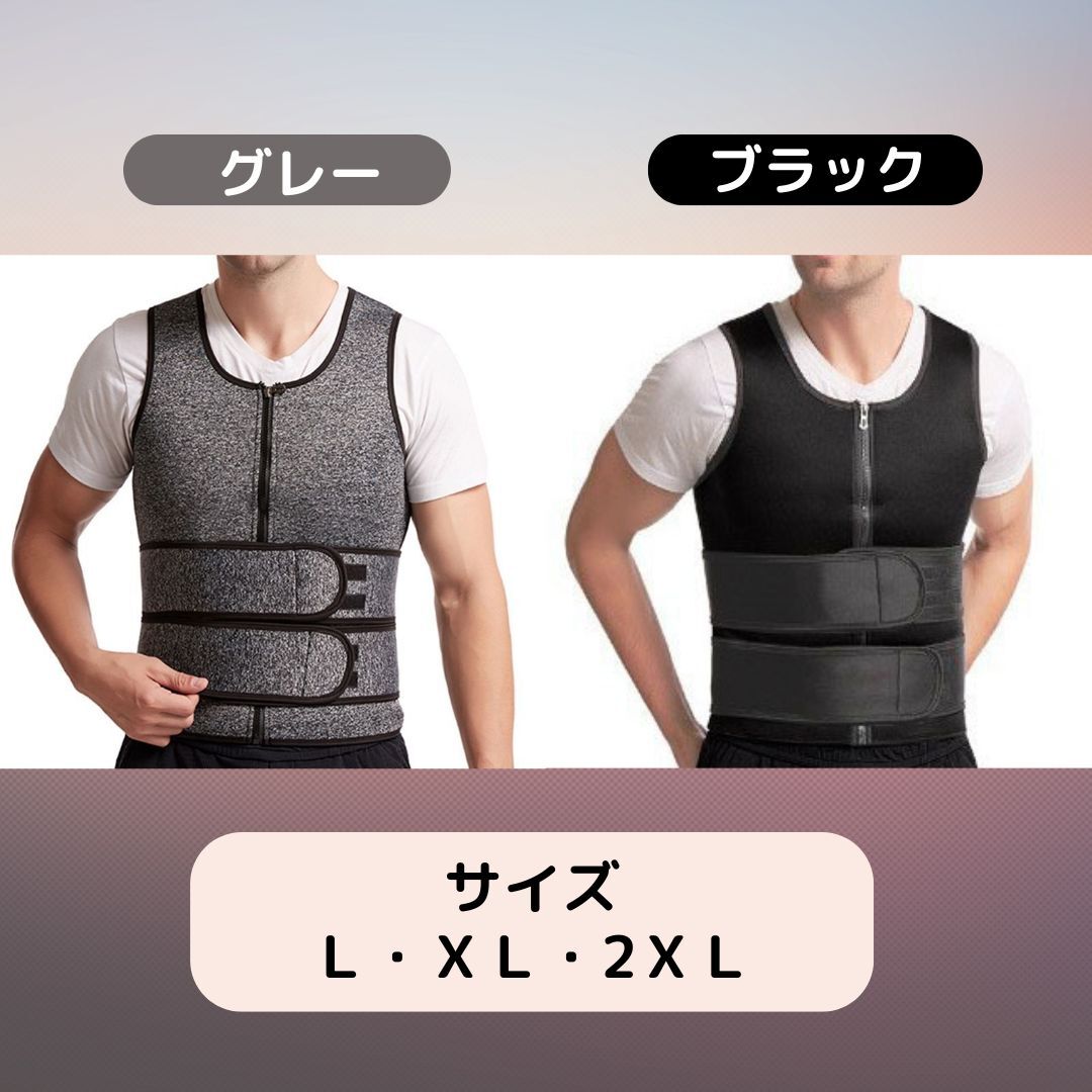 【新品】メンズ 加圧サウナスーツ ベスト ウエストベルト付き 補正下着 ダイエット トレーニング コルセット グレー XXL