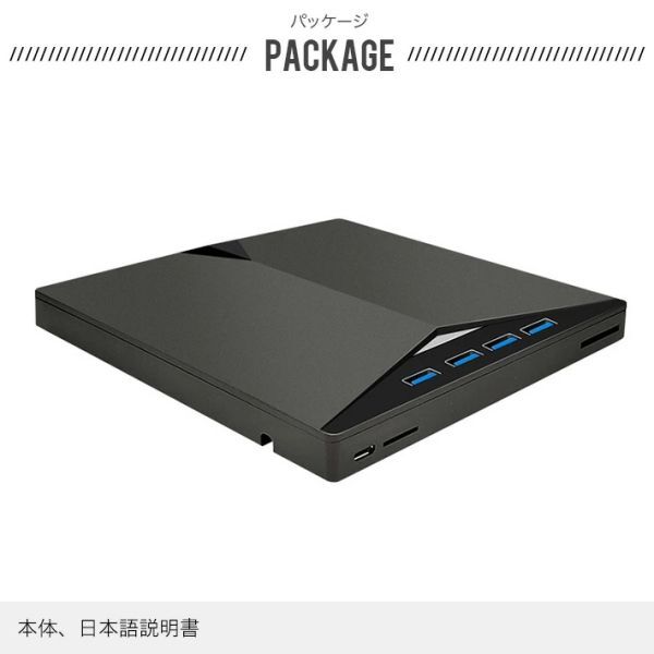 ブルーレイドライブ 外付け DVDドライブ 6X USB3.0/Type-Cポート 軽量 薄型 CD/DVD読取・書き込み ポータブルBlu-rayプレーヤー Windows XP/7/8/10/11 MacOS対応 MacBookPC 日本語説明書 黒