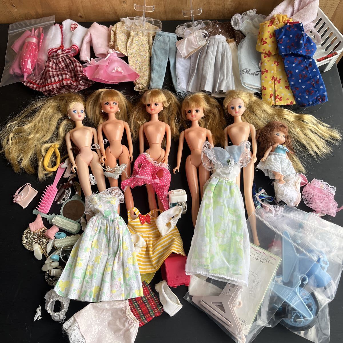 リカちゃん人形と服、小物のセットです。