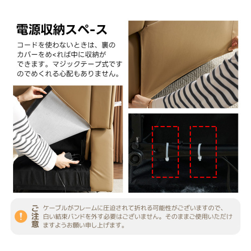 ◆08電源収納スペース コードを使わないときは、裏のカバーをめ<れば中に収納ができます。 マジックテープ式ですのでめくれる心配もありません。