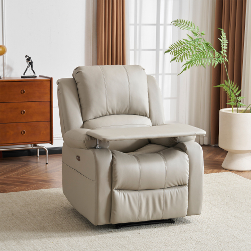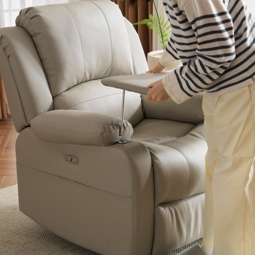 リクライニングチェア テーブル付き リクライニングソファ 1人掛け 電動 リクライニング ファブリック オットマン一体型 アッシュグレー