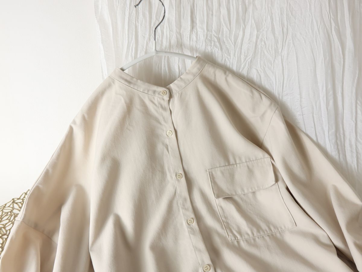 バックスリット入り、袖口とフロントボタン開閉、左胸ポケット付き。