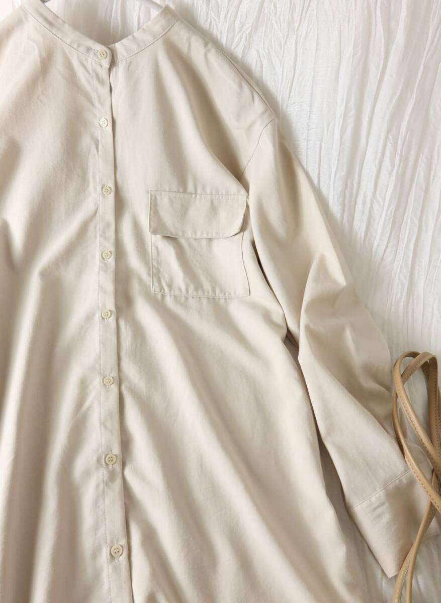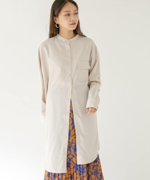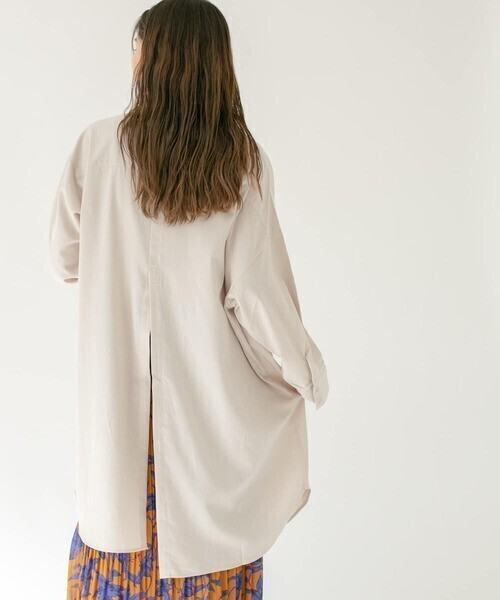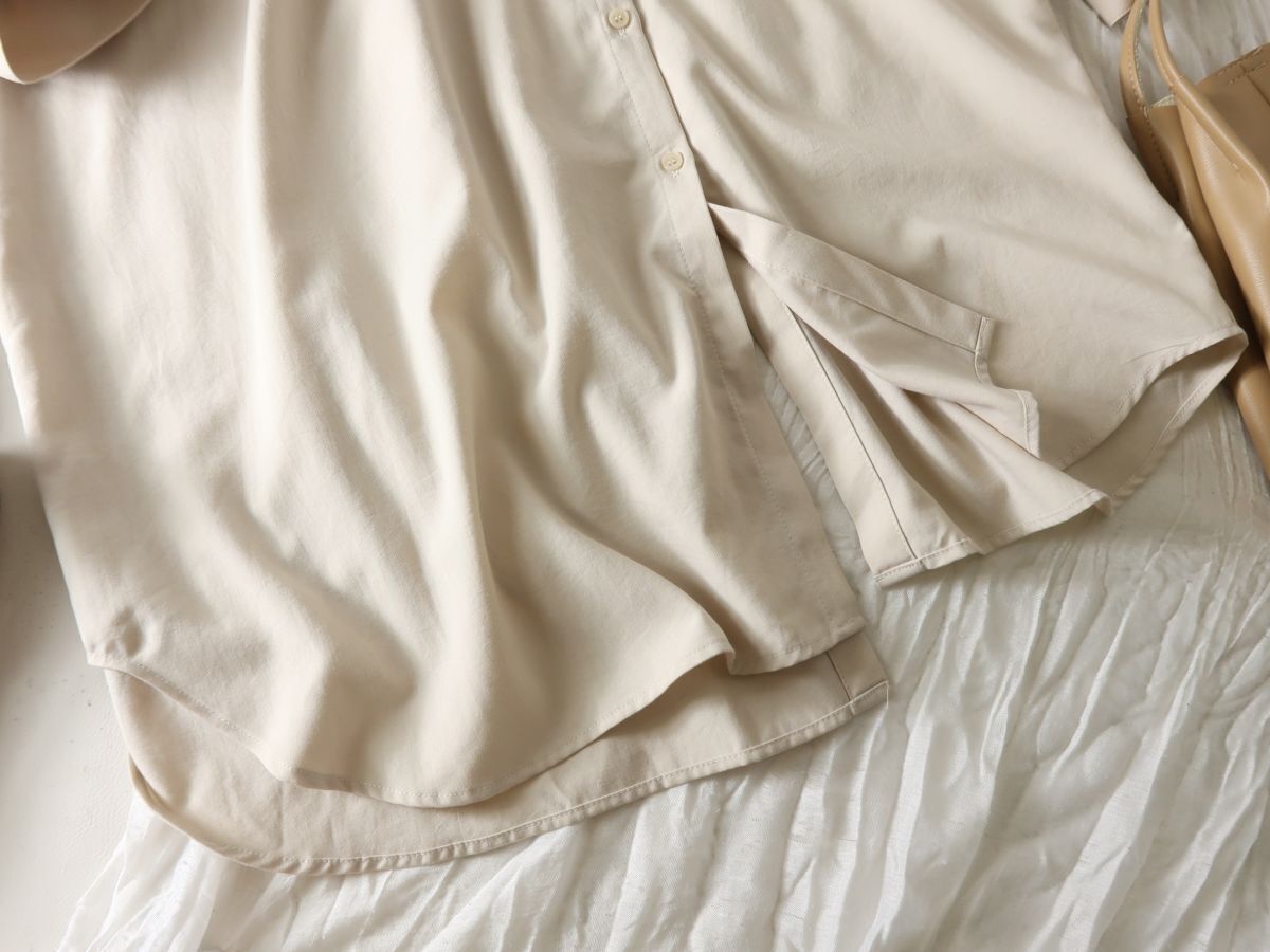 さらっと着るだけでサマになるアシンメトリーデザインのシャツ。腰回りをカバーするロング丈が嬉しいポイント。淡いカラーがレイヤード時の重たさを解消するので、羽織として取り入れていただくのもおすすめです。