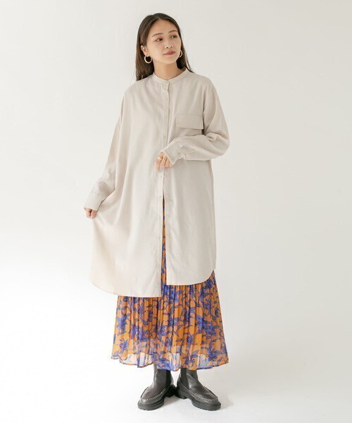 タイトなボトムとも相性抜群ですが、あえてプリーツパンツやロングスカートでルーズに仕上げるもおすすめの着こなしです。
