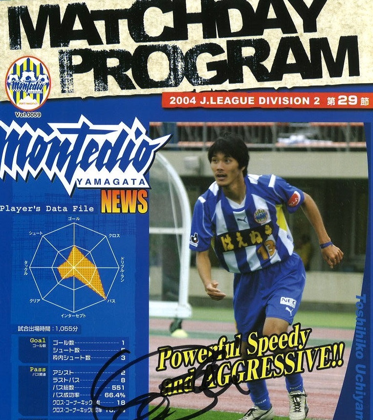 激レア品 非売品モンテディオ山形 2004 J2第26節 VSヴァンフォーレ甲府 マッチデープログラムNo.59 内山俊彦選手表紙 直筆サイン入