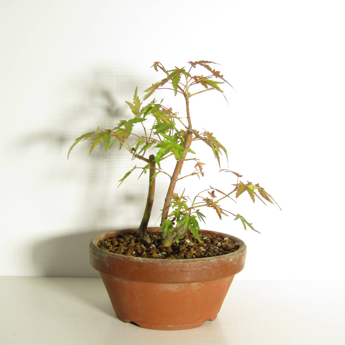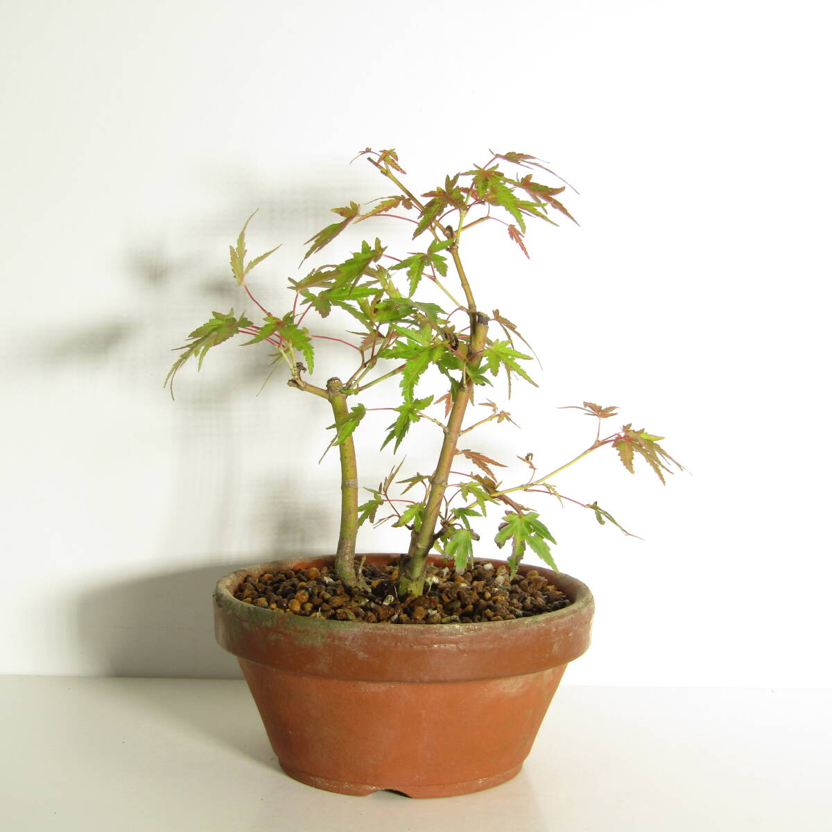 立ち上がりから優しい幹模様にバランスの良い自然樹形、このまま鉢を変えていただくだけでも趣のある姿を楽しむことのできる一品ですが、これからさらに枝葉を増やし整え持ち込んでいくことでより一層美しい盆栽としてお楽しみいただけます。