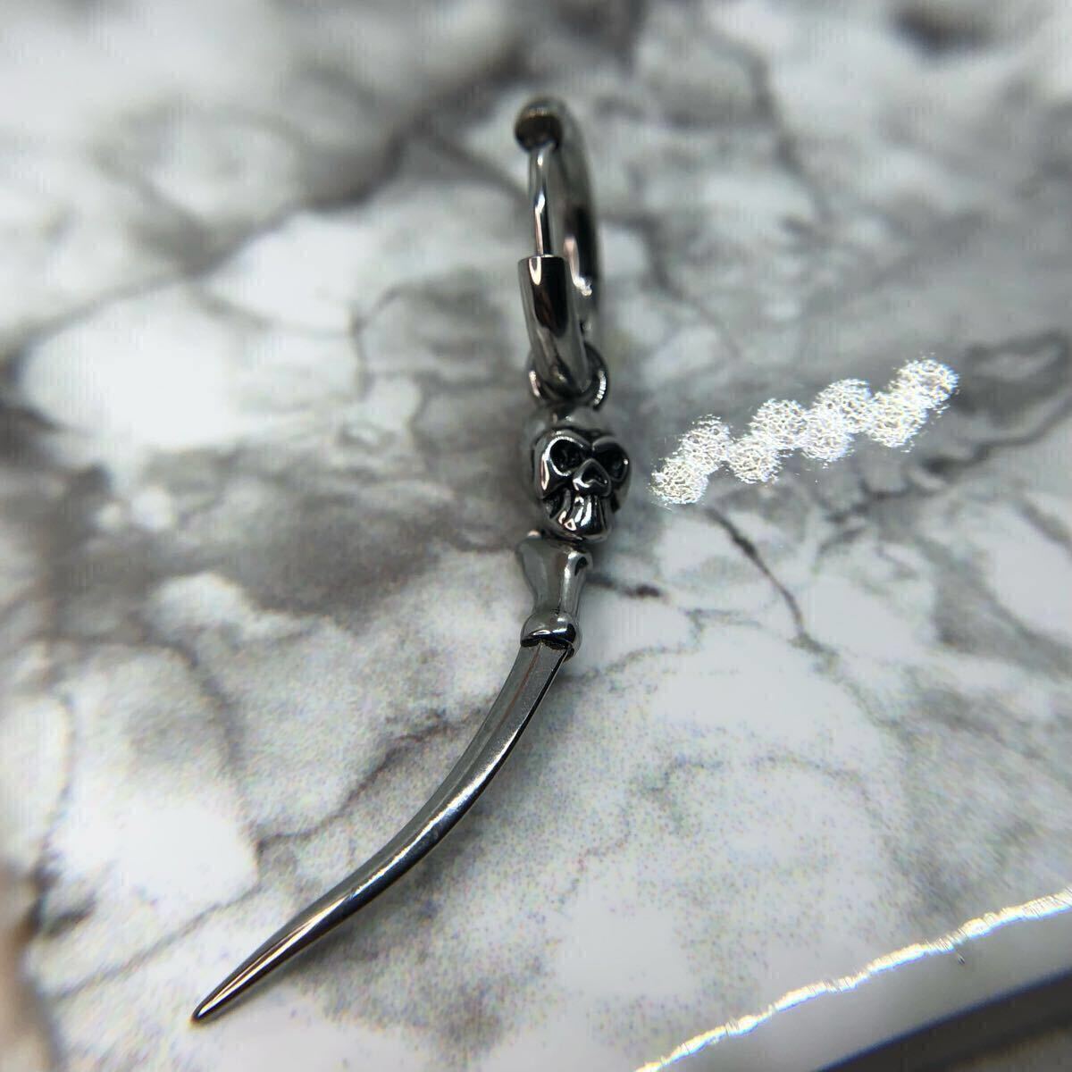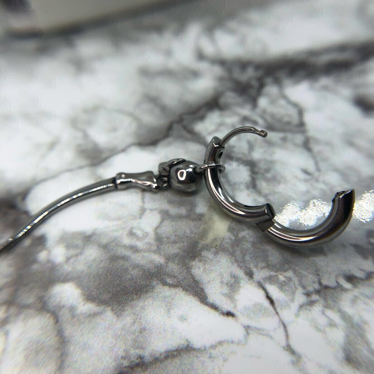 【新品】フープ ピアス 18g ドロップ ドクロ 骸骨 髑髏 爪 クロー フープ シルバー メンズ 韓国 片耳