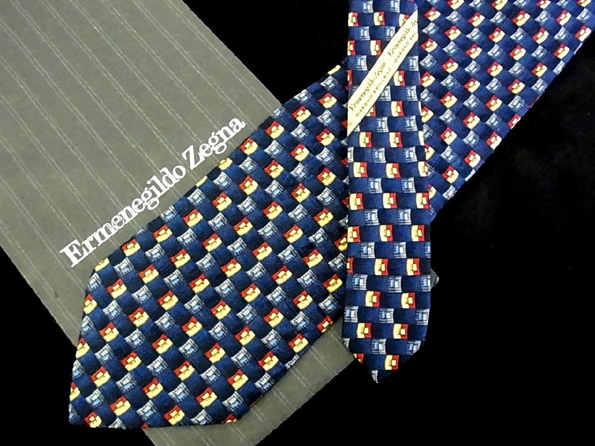 ♪今週の特売980円~♪4119♪良品【ZEGNA】ゼニア【スクエア 柄】ネクタイ♪