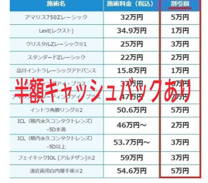 (例)アマリス750zレーシック→5万円割り引き+紹介料2万円キャッシュバック