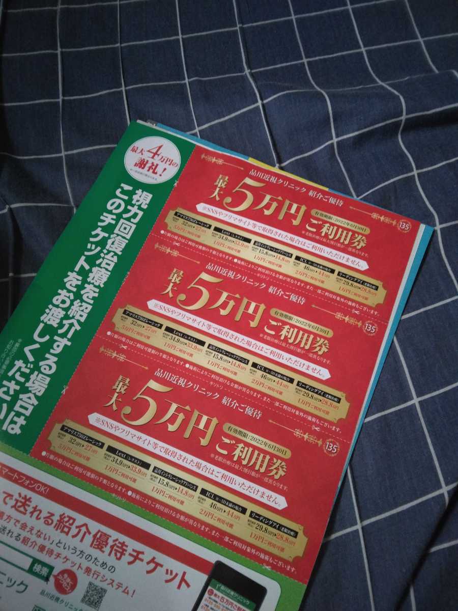 この特別割引チケットでおトクにレーシックが受けられます(日帰りで検査と施術を行う1日レーシックなら、さらに1万円割引!)
