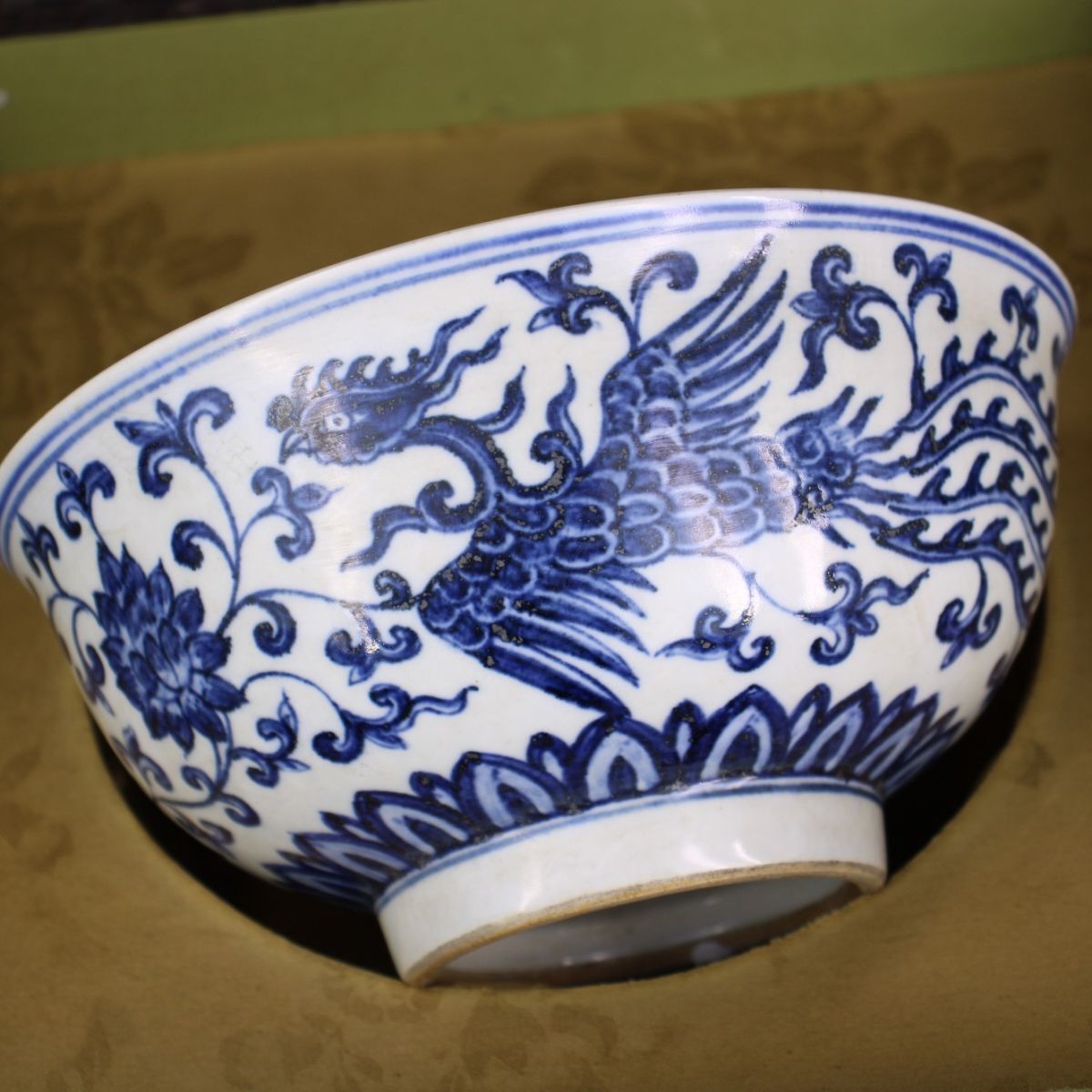 【永】明時代 大明宣德年製 青花鳳紋大碗 漆盒 古陶磁器 陶芸 中国陶瓷器 唐瓷 置物擺件 古美術品 古賞物 収集 旧家蔵出 中国唐物 A703
