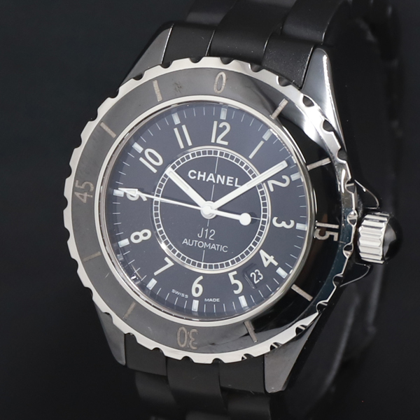 1円 箱付 シャネル J12 H0684 PN70997 AT/自動巻 黒文字盤 デイト メンズ 腕時計 0025410 10ERT KRK