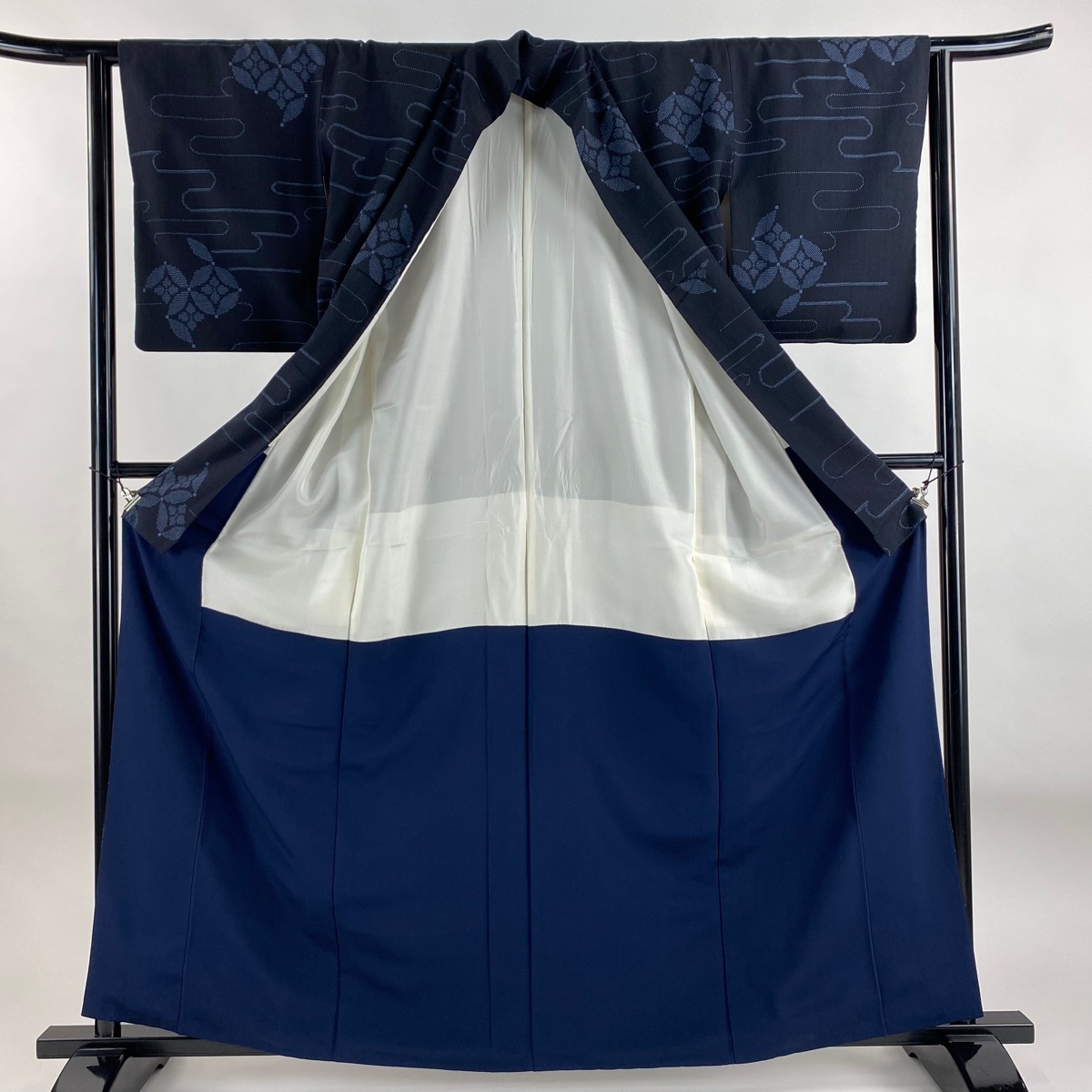 | 紬 美品 秀品 七宝 ヱ霞 濃紺 袷 身丈162.5 裄丈62 S 正絹 【中古】 |
