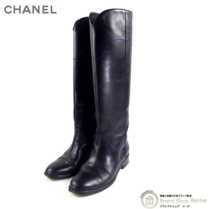 | シャネル(CHANEL) レザー ロングブーツ ヴィンテージ シューズ 靴 #38 1/2C ブラック G26069(中古) |
