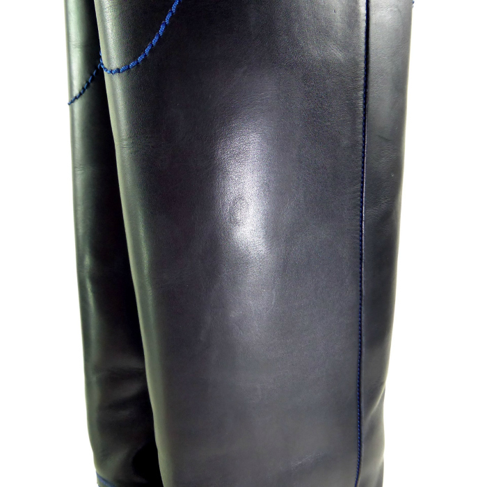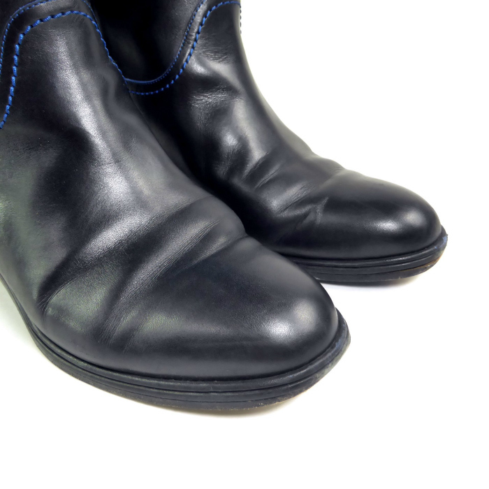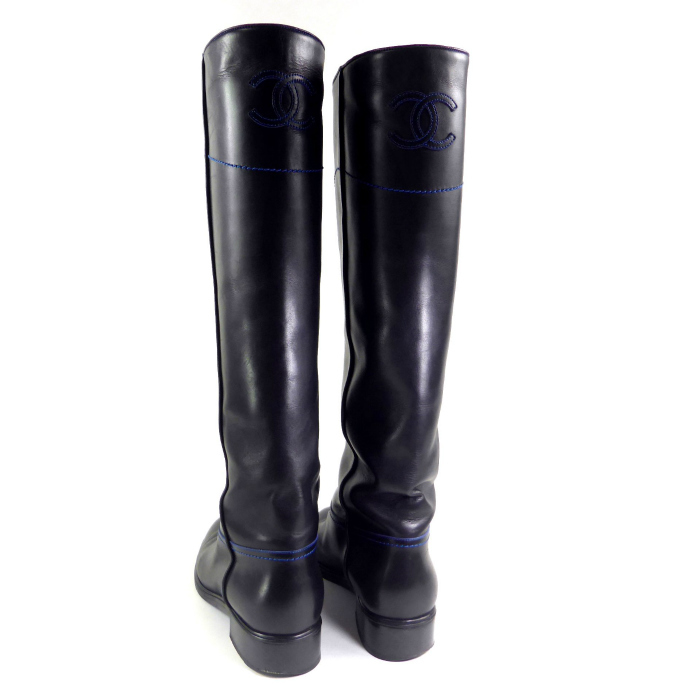 | ココマークが入ったレザーで仕立てた、シャネルのロングブーツ。 ブラックレザーにブルーのステッチが特徴的なデザイン。 ヒール高も高くないので、年代な流行に関わらず、長くご愛用いただけます。 カジュアルからきれいめスタイルまで、スカートでもパンツでも幅広く着こなしを支えてくれるブーツです。 |