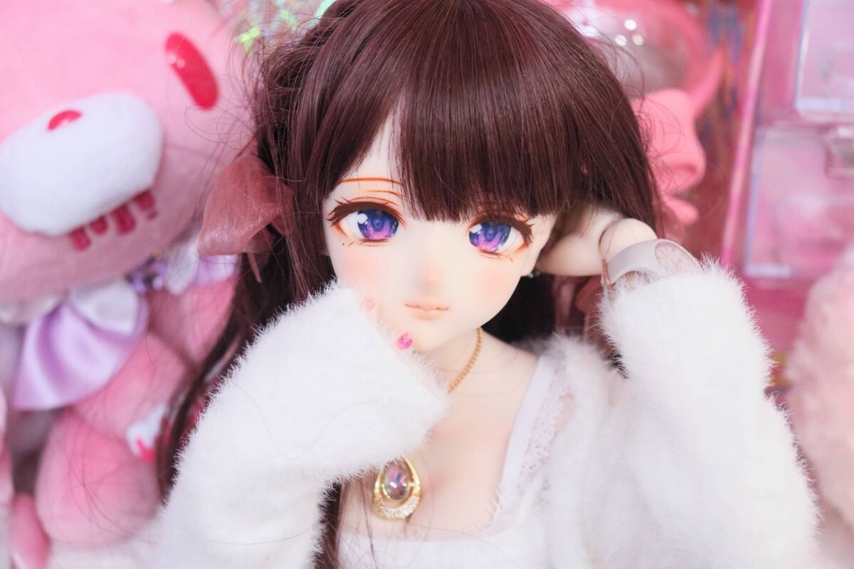 ボークス製DDH-09セミホワイト肌を使用、アイホール、顎、口、鼻周りを削って整えています。