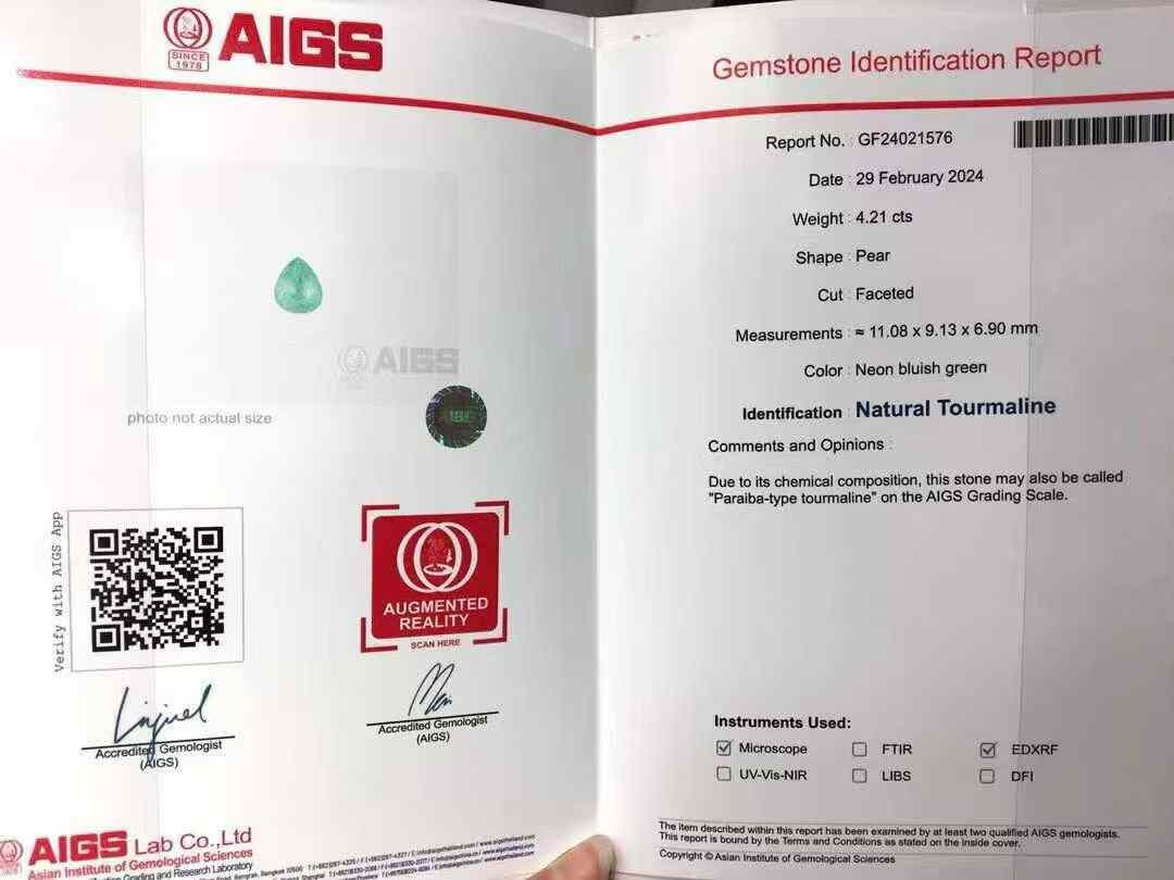 4.21ct 天然ネオンブルーグリーン パライバ トルマリンルースストーン