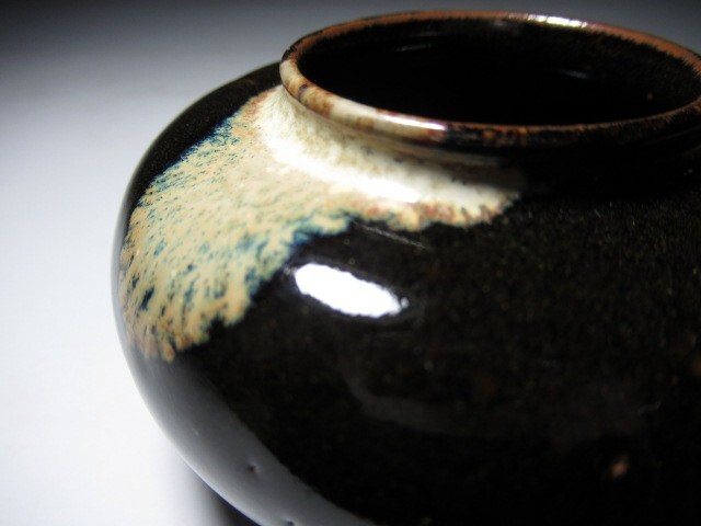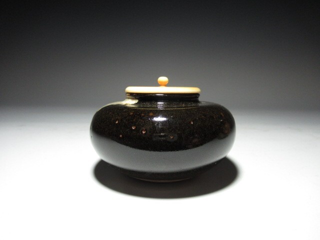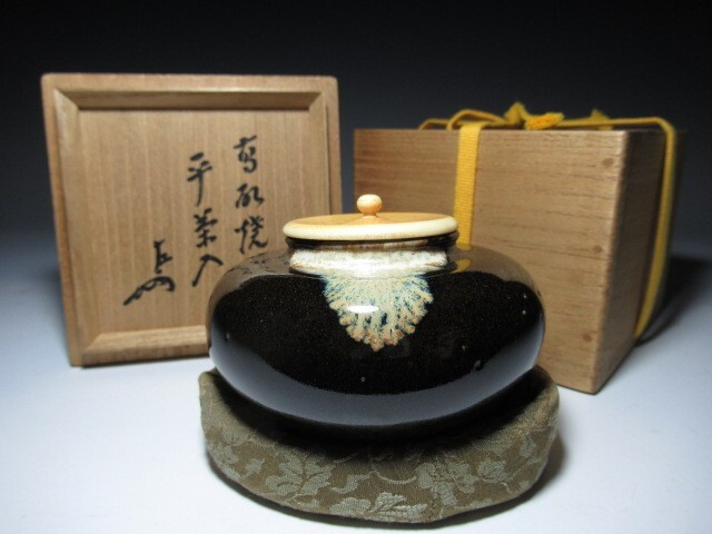 深く奥行きのある色合いに口からかかった釉薬が素晴らしいアクセントになっており、大変美しい作品です。 桐箱の蓋裏には即中斎の花押があり気品を添えています。 サイズ 直径8.5㎝×高さ6.2㎝ (多少の差はお許しください) 状態 出品前に検品を致しましたが、疵やヒビ・直しは見られません。 骨董品という事をご勘案頂き、時代経過のスレや、窯疵、小さな傷がある場合があるかもしれませんのでご承知置きください。 画像をご覧いただき、気になる箇所がありましたら「質問欄」よりお問い合わせください。 | |||