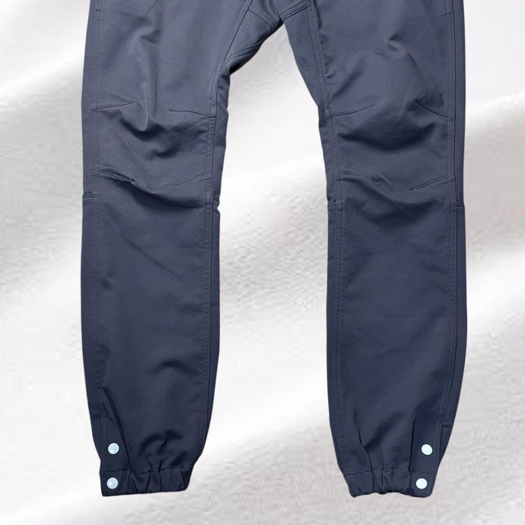 シルエットは自転車に乗ることを考えた細身のシルエットで、生地は撥水性があり肌触りも良く動きやすさを考えたストレッチ素材を使用。