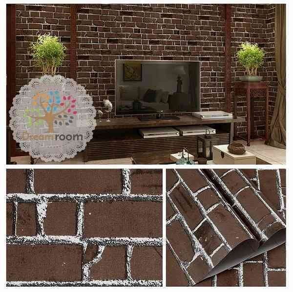 【 20m 】 3D レンガ ダークブラウン ウォール ペーパー ビンテージ 石垣 ストーン 壁紙 インテリア はがせる シール DIY