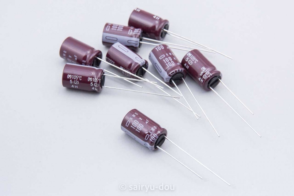 日本ケミコンの汎用電解コンデンサ『KMQ 100V/100μF』の24個セットです