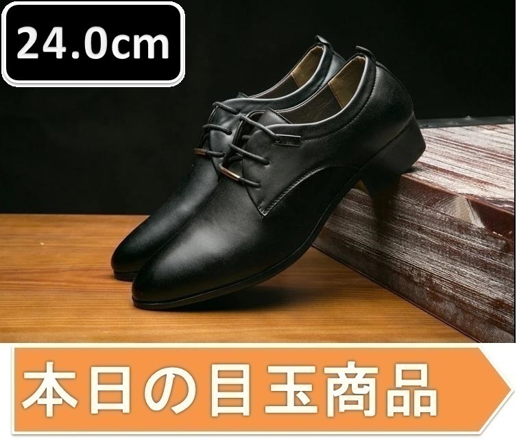 1スタ ☆ メンズ ビジネス レザー シューズ ブラック サイズ 24.0cm 革靴 靴 カジュアル 屈曲性 通勤 軽量 柔らかい 新品 【apa-156】
